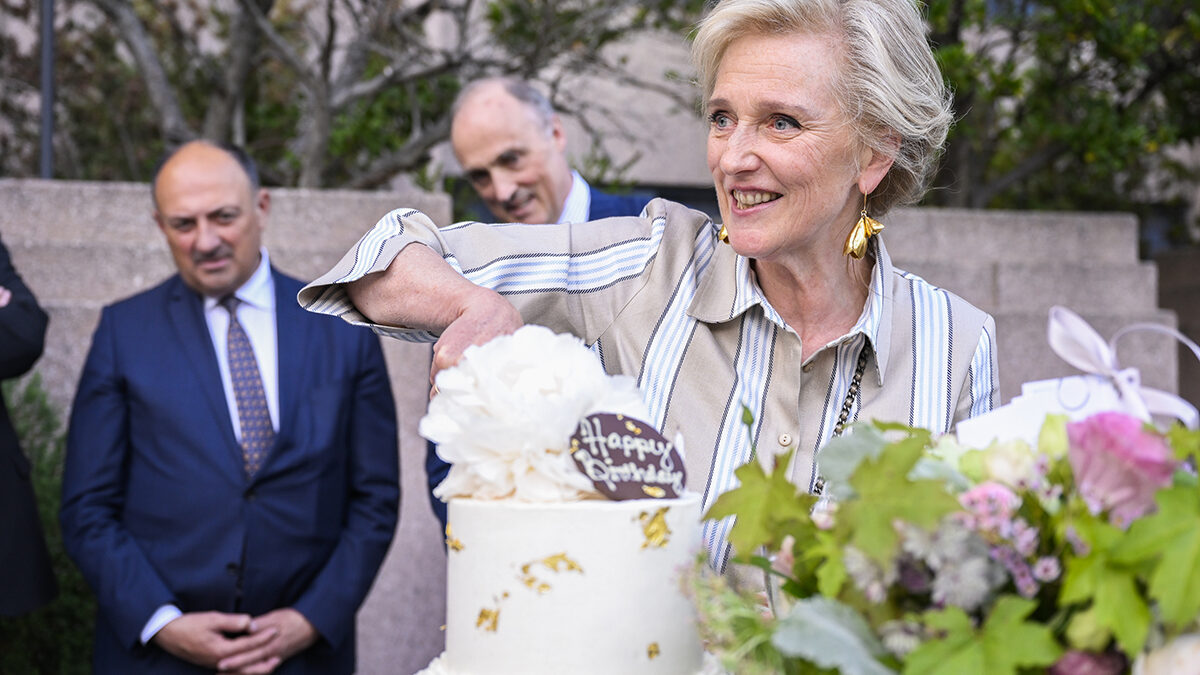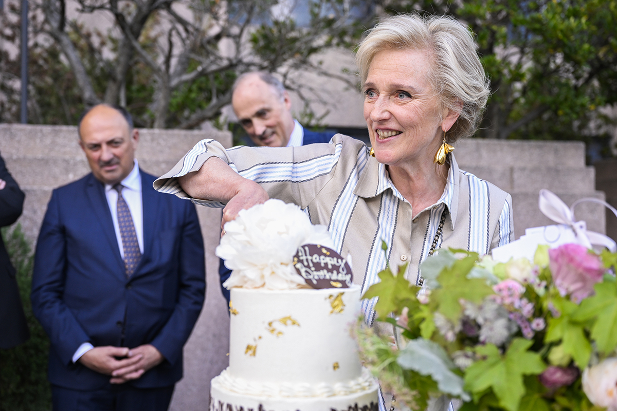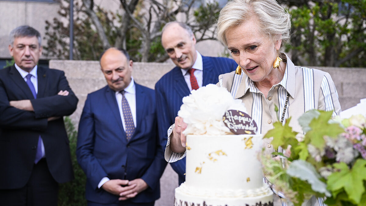 La princesa Astrid de Bélgica fotografiada celebrando su 60 cumpleaños durante una recepción en la Misión Económica Belga en los Estados Unidos de América