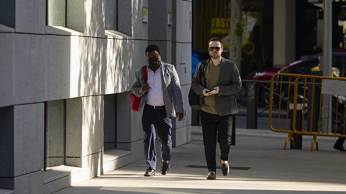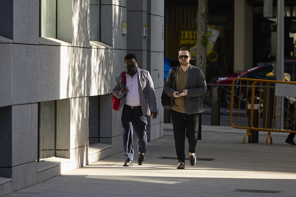 El marinero Samuel Kwesi a su llegada a declarar a la Audiencia Nacional. Estas primeras diligencias giran en torno a la declaración del patrón del barco, imputado por “al menos 21 delitos de homicidio por imprudencia grave y contra los derechos de los trabajadores”.