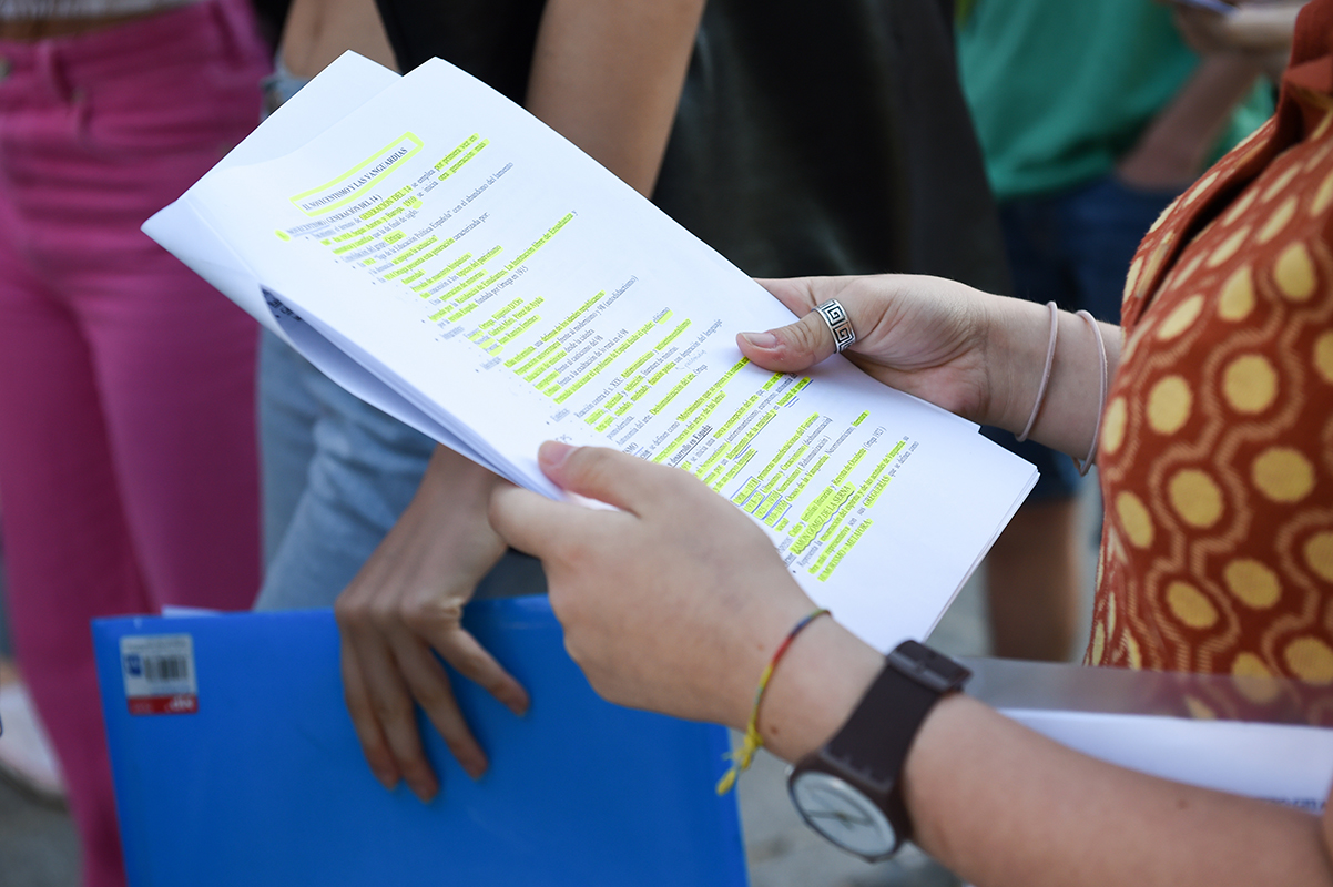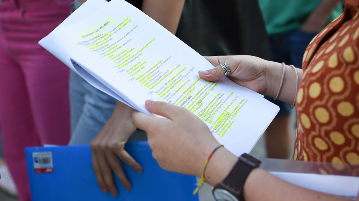 Una chica repasa los apuntes el día en que da comienzo las pruebas de acceso a la universidad del año 2022, en la Facultad de Derecho de la Universidad Complutense de Madrid.