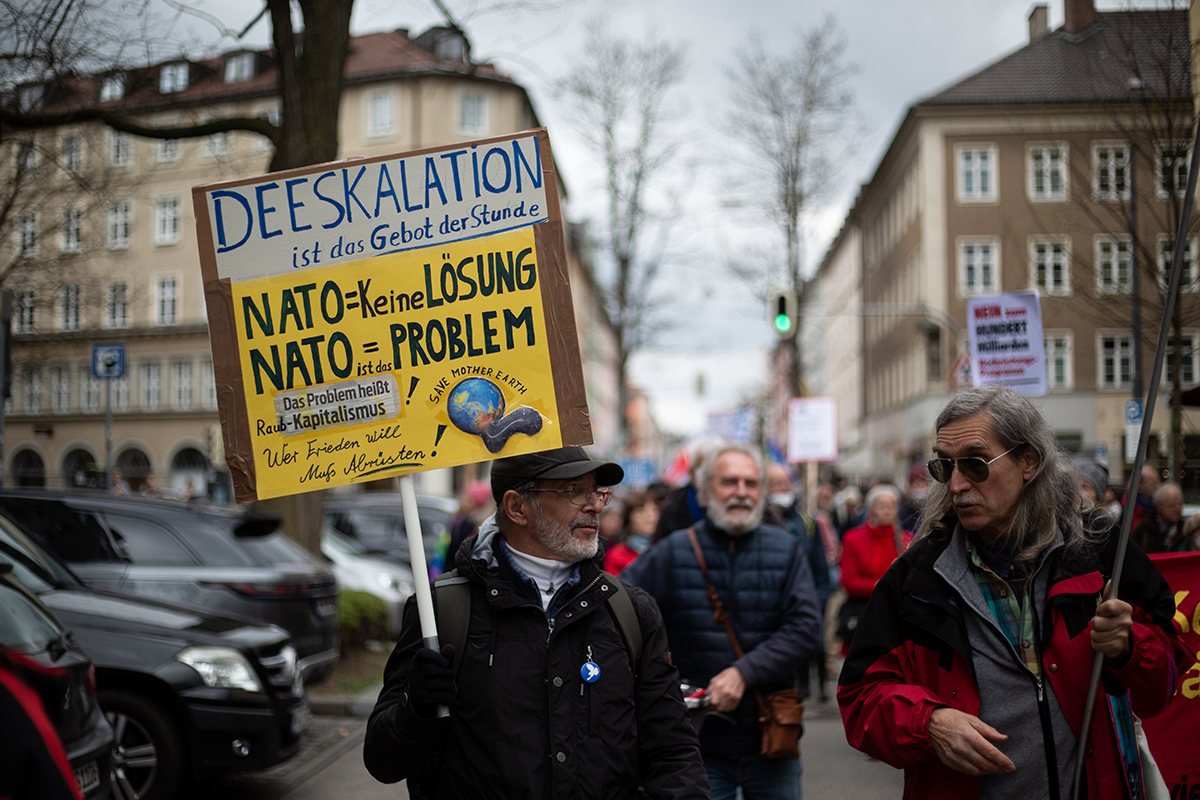 Cerca de mil personas se unieron a la Marcha de Pascua por la paz y el desarme en Munich, Alemania. Protestaron contra la brutal guerra de Putin contra Ucrania y contra el armamento de los alemanes y militares y la OTAN.
