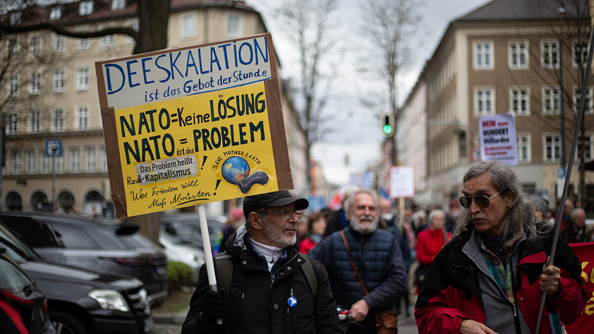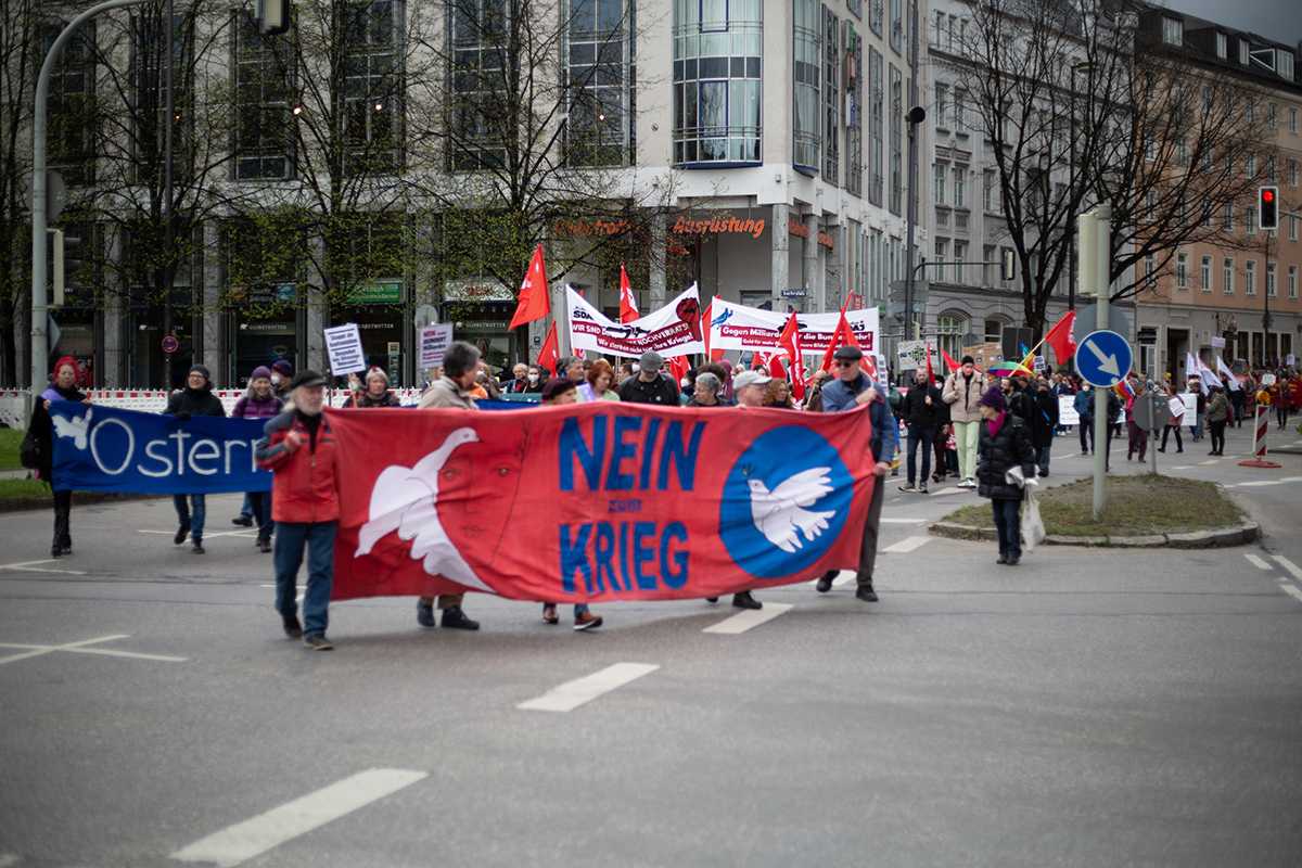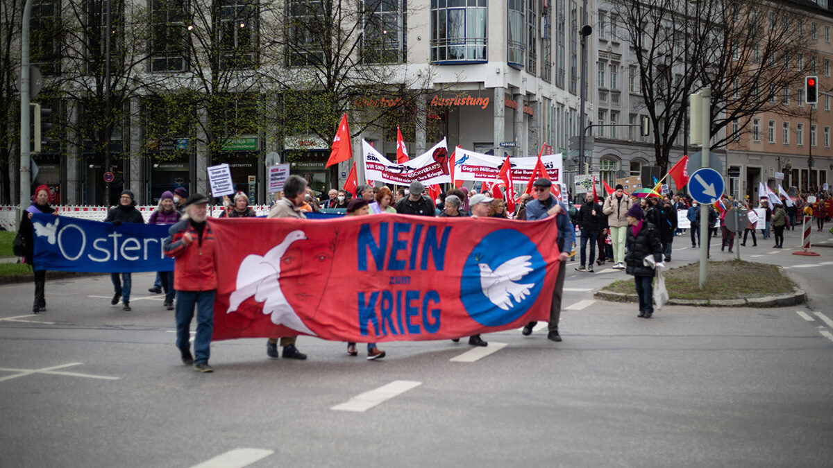 Cerca de mil personas se unieron a la Marcha de Pascua por la paz y el desarme en Munich, Alemania. Protestaron contra la brutal guerra de Putin contra Ucrania y contra el armamento de los alemanes y militares y la OTAN.