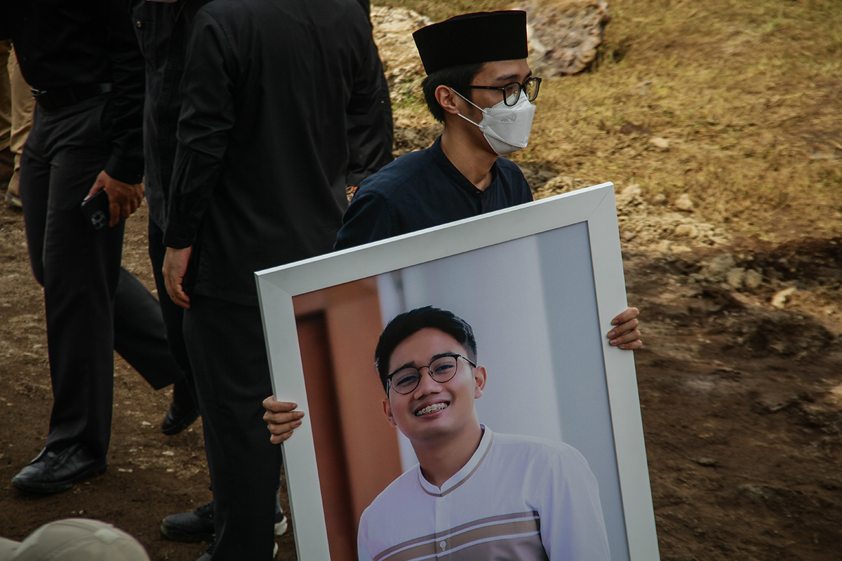 El cuerpo de Emmeril Kahn Mumtadz, el hijo mayor del gobernador de Java Occidental, Ridwan Kamil, fue enterrado junto a la mezquita Al-Mumtadz diseñada por su padre Ridwan Kamil.
