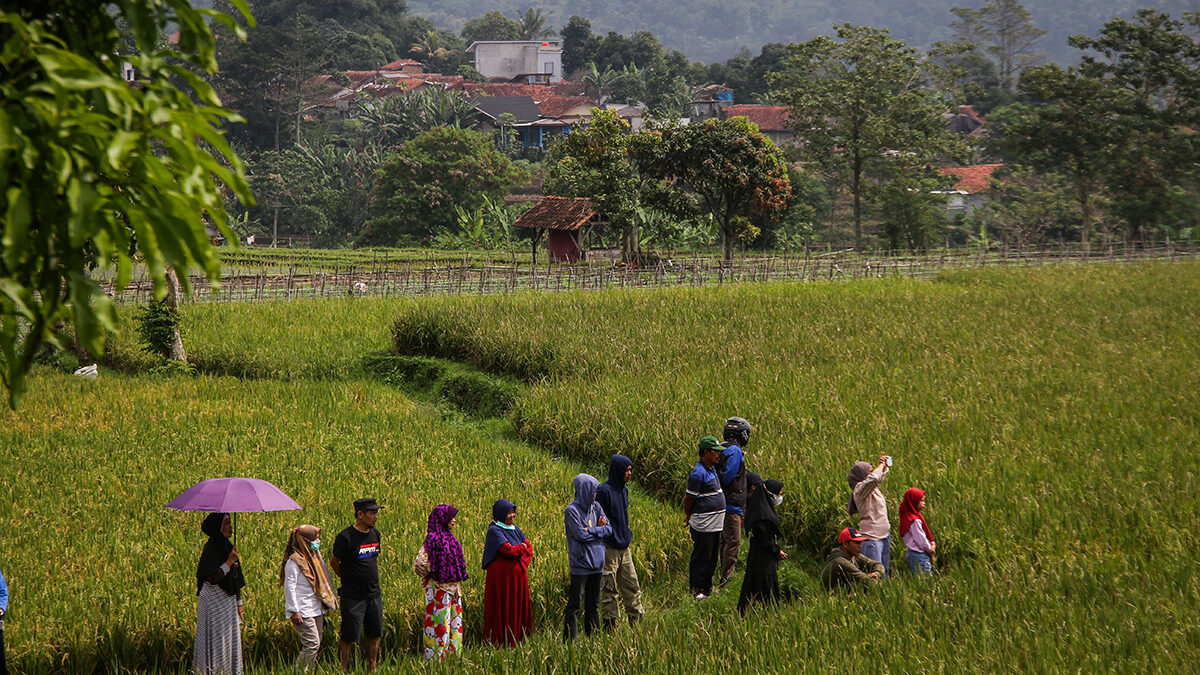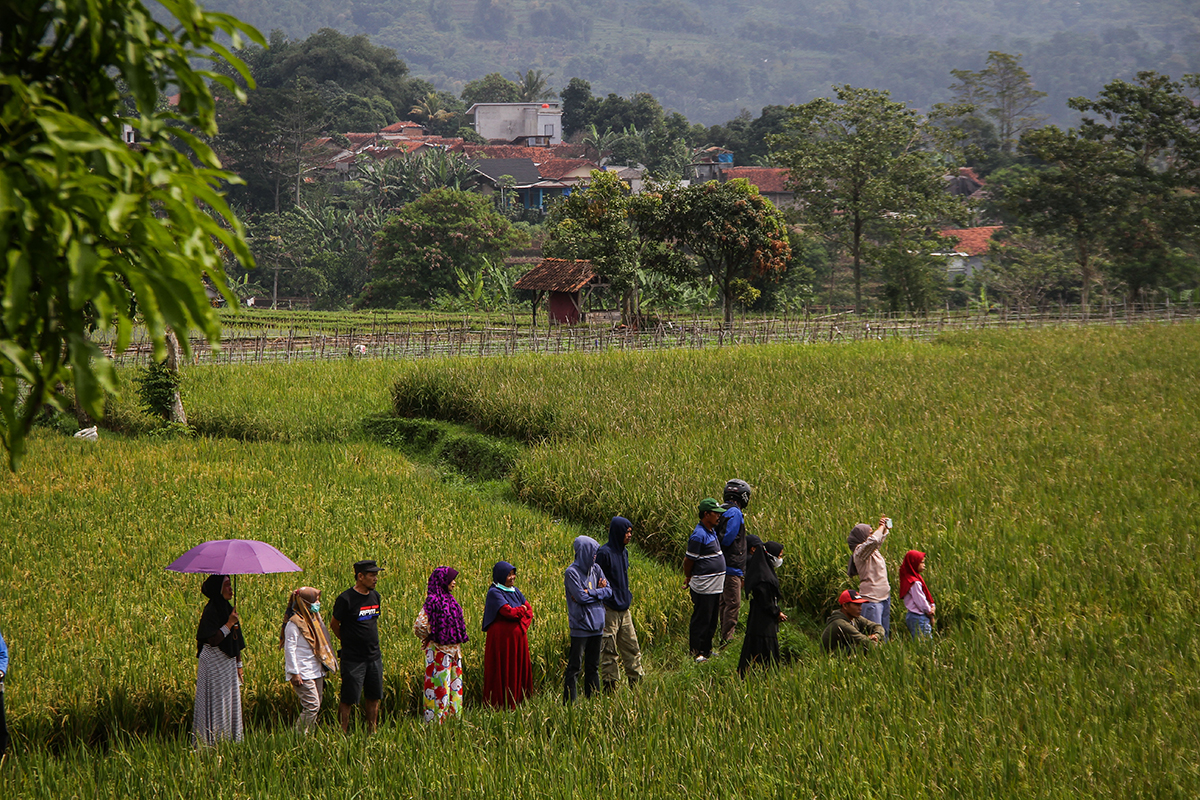 Se ve a un miembro de la familia con una foto de Emmeril Kahn Mumtadz en Cimaung.