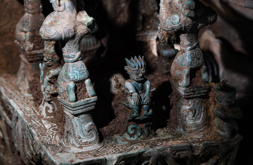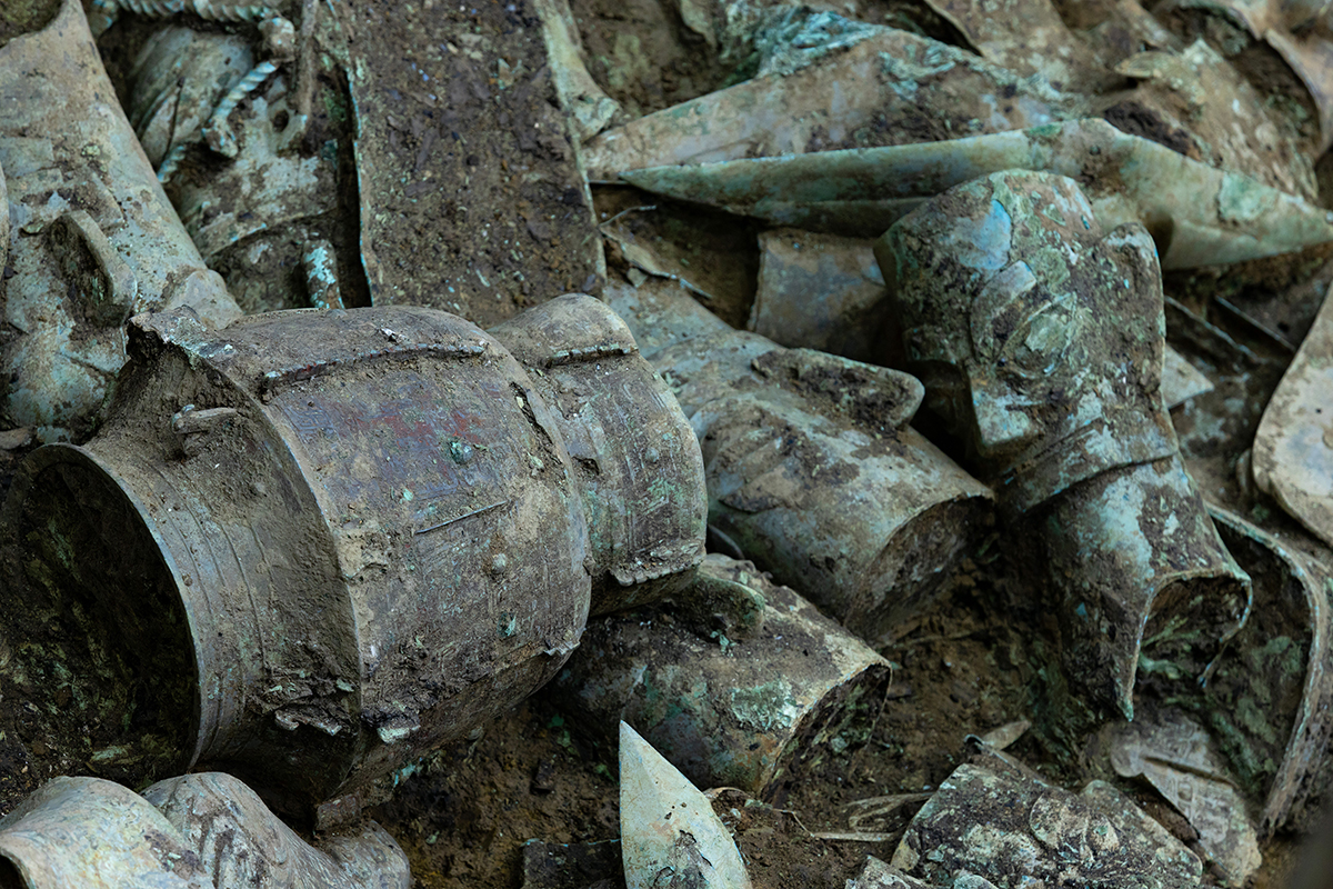 En el sitio se ha excavado un tesoro de exquisitas piezas de bronce, oro y jade, incluidos al menos 10 objetos de bronce desenterrados por primera vez en la historia de la civilización humana.