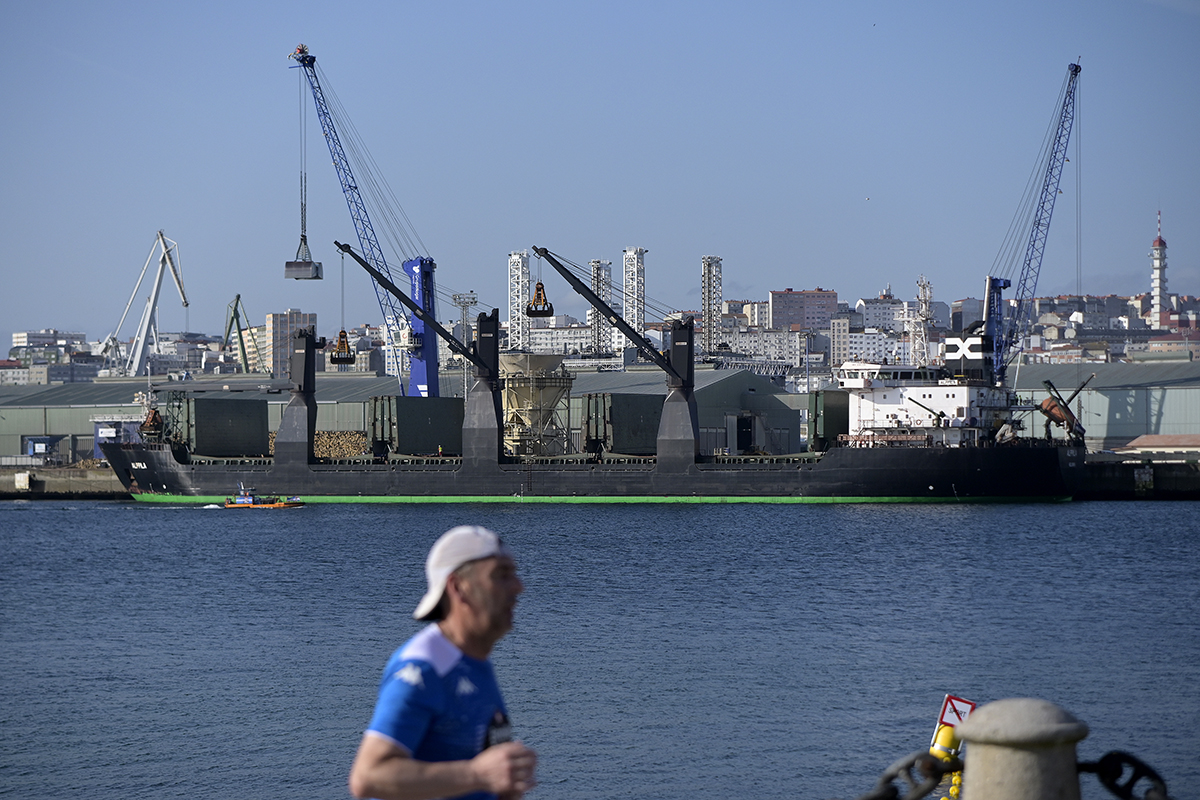 El mercante Finlandés Alppila a su llegada al puerto de A Coruña que transporta en sus bodegas 18.000 toneladas de maíz ucraniano. Se trata del primer envío de cereal a través de una nueva ruta marítima abierta por el Báltico para sortear el bloqueo al que la Armada rusa somete los puertos ucranianos del Mar Negro desde que comenzó la guerra en Ucrania.
