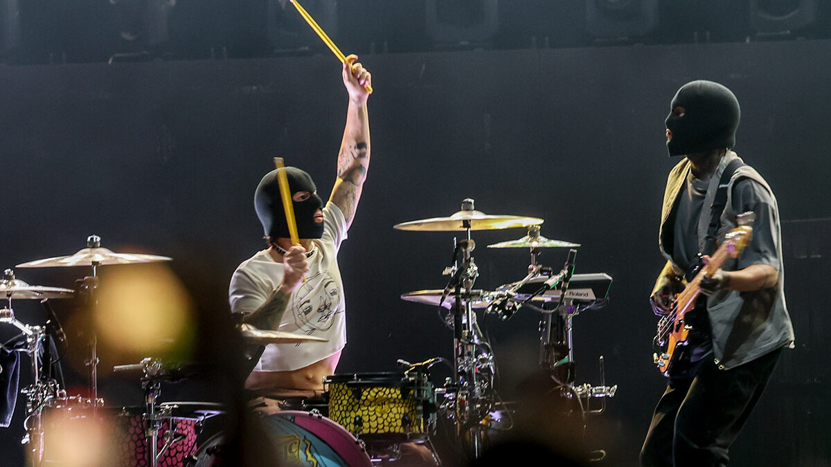 Imágenes de los dos componentes del grupo Twenty One Pilots durante el primer día del festival Mad Cool 2022.