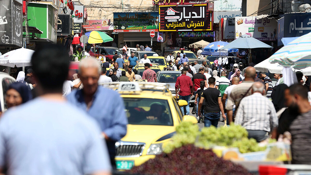 Los palestinos compran en un mercado antes de la fiesta musulmana del sacrificio Eid al-Adha, en la ciudad cisjordana de Naplusa.