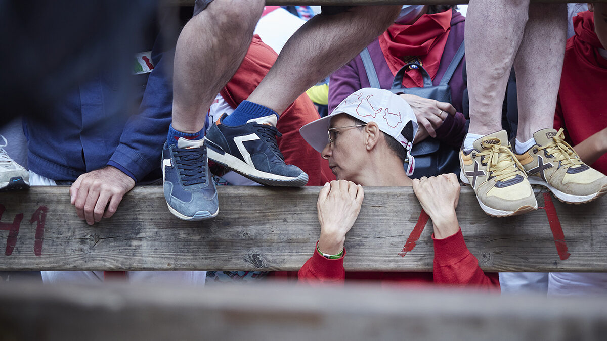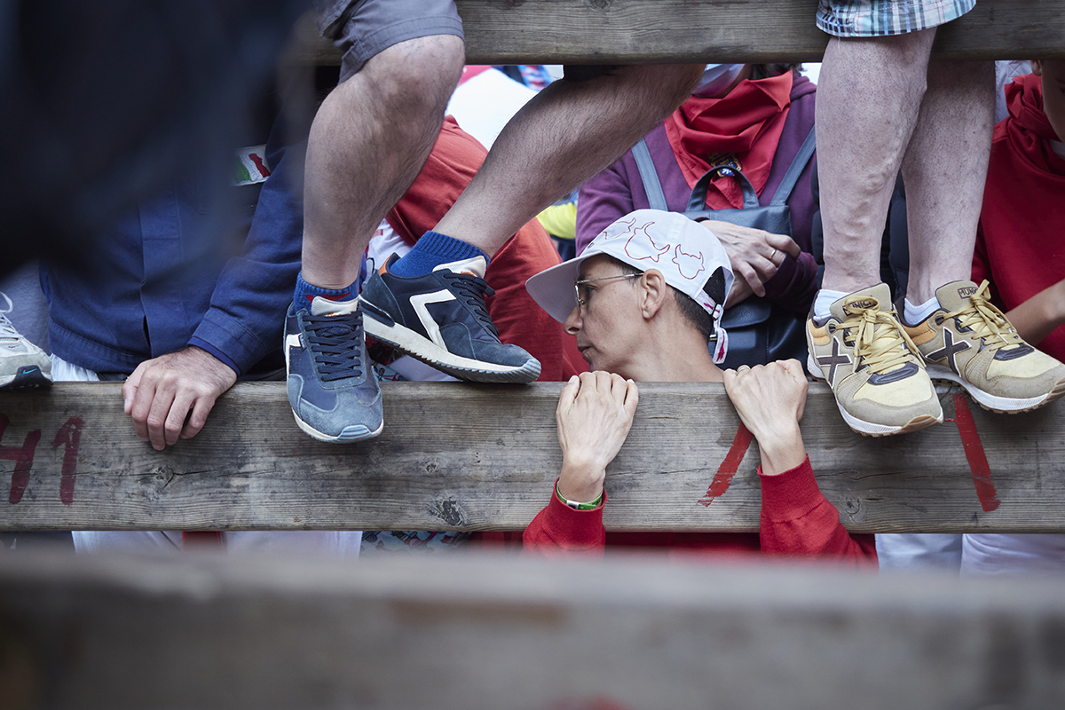 Varias personas observan desde las vallas el segundo encierro de San Fermín 2022, de la ganadería de Fuente Ymbro.