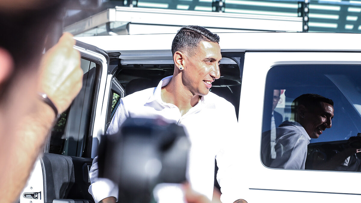 El jugador de fútbol argentino, Ángel Di Maria, llegando a los exámenes médicos tras haber fichado para la Juventus de Turín.