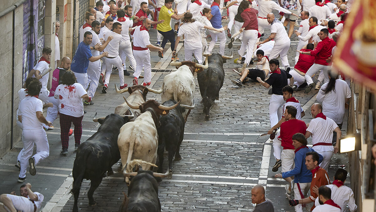 Sexto día de encierro de las Fiestas de San Fermín de Pamplona, los corredores de todo el mundo acuden cada año a Pamplona para participar en las ocho jornadas taurinas.