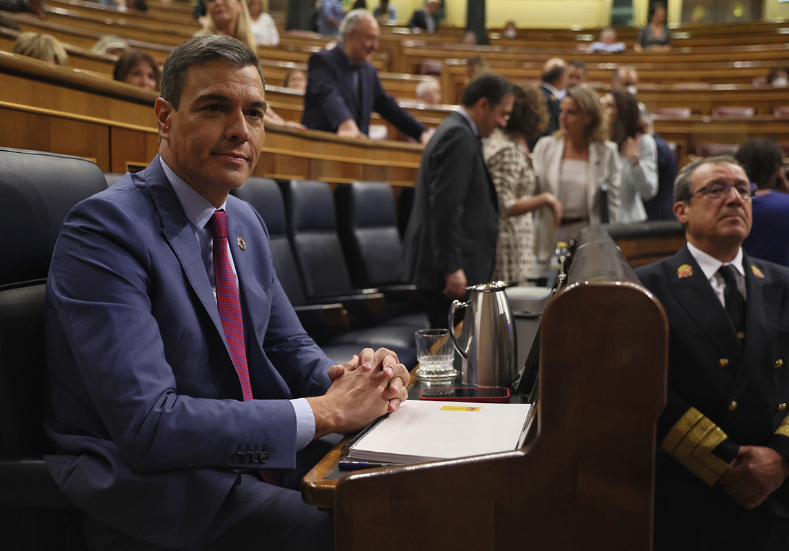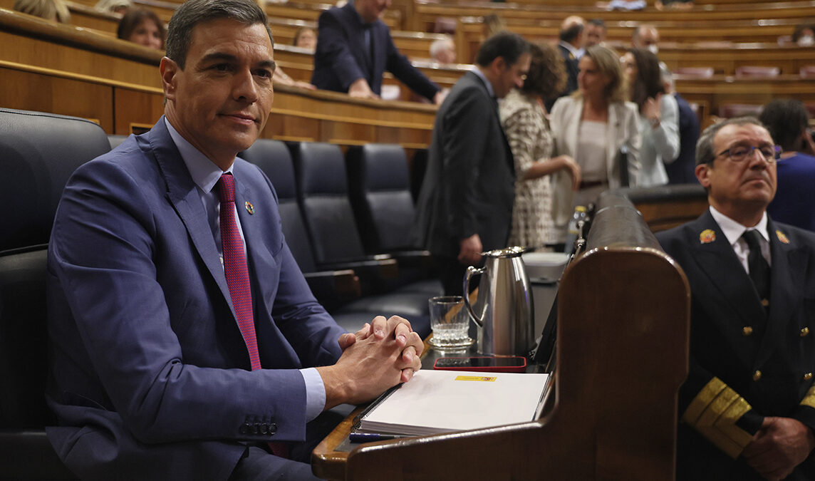 El presidente del Gobierno, Pedro Sánchez, a su llegada a la segunda jornada de la 26 edición del Debate sobre el Estado de la Nación, en el Congreso de los Diputados.