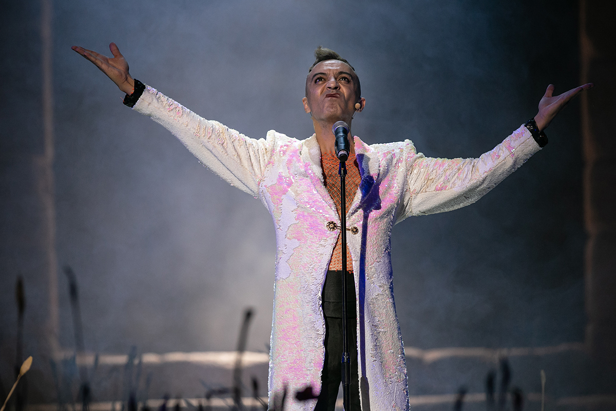 Un actor durante la presentación de la obra ‘El Misántropo’, en el Teatro Clásico. El Misántropo reivindica el derecho a ser huraño por naturaleza y lo lleva hasta el extremo por convicción. La trama gira en torno a La Muchacha, hija del Misántropo, que vive con él y es el único personaje de la función que no tiene nombre.