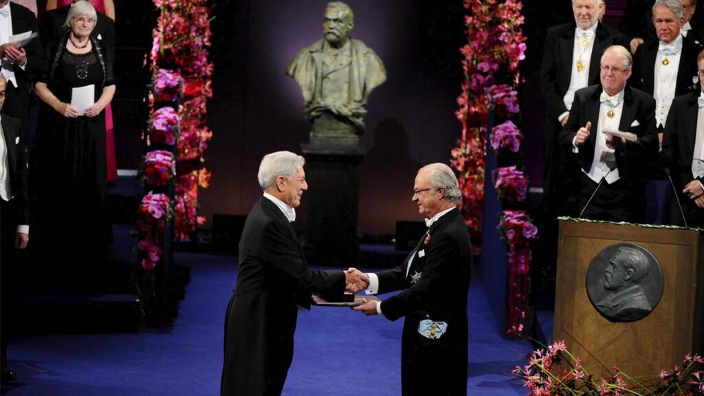Mario Vargas Llosa recibió en 1967 el galardón de manos de Rómulo Gallegos