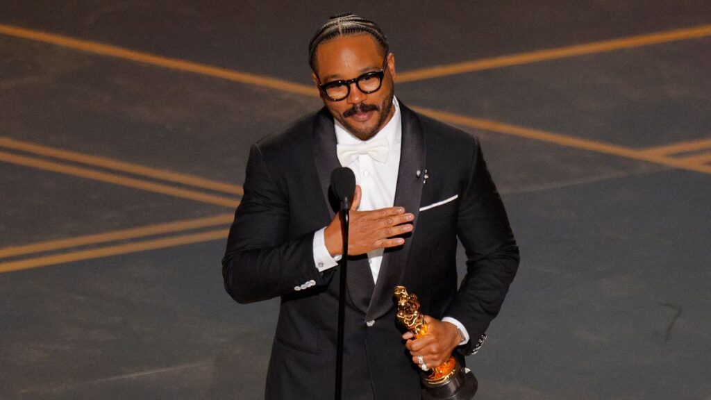 Ryan Coogler acepta el Oscar al Mejor Guion Original por Sinners durante la gala de la 98.ª edición de los Premios de la Academia en Hollywood, Los Ángeles.