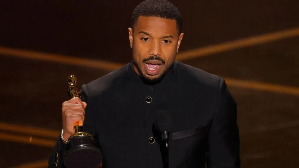 Michael B. Jordan acepta el Oscar al Mejor Actor por Sinners durante la gala de la 98.ª edición de los Premios de la Academia en Hollywood, Los Ángeles.