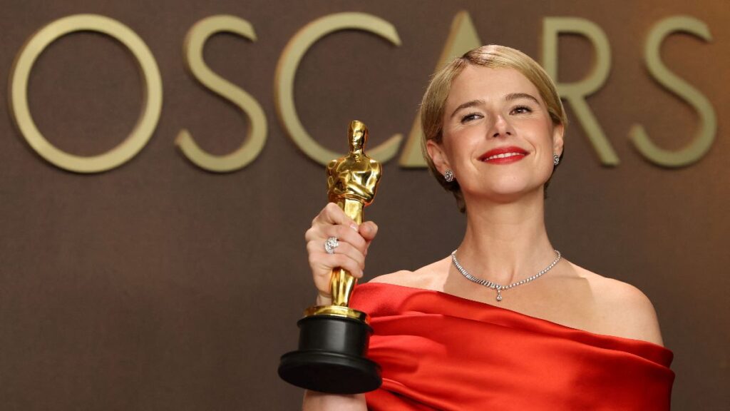Amy Madigan acepta el Oscar a la Mejor Actriz de Reparto por «Weapons» durante la gala de la 98.ª edición de los Premios de la Academia en Hollywood.