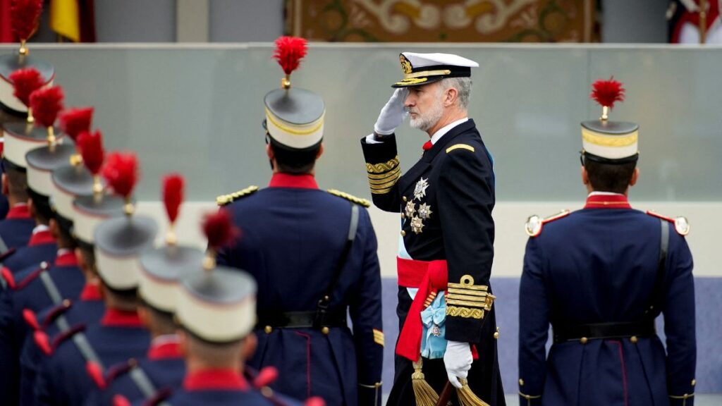 Las Fuerzas Armadas han protagonizado este domingo un desfile militar por Madrid con motivo de la fiesta nacional del 12 de octubre, Día de la Hispanidad. Han asistido la familia real, el presidente del Gobierno y casi todos los ministros y presidentes autonómicos.