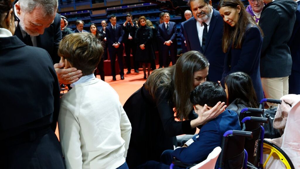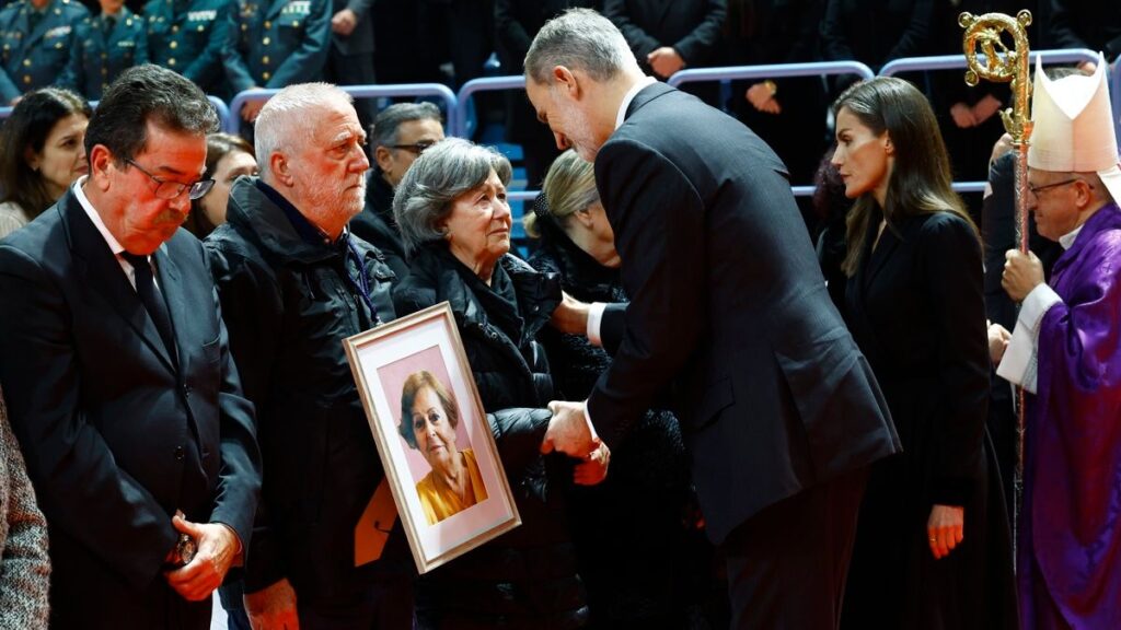 El rey Felipe y la reina Letizia conversan con familiares de las víctimas durante el funeral. | EFE/Casa Real/Francisco Gómez