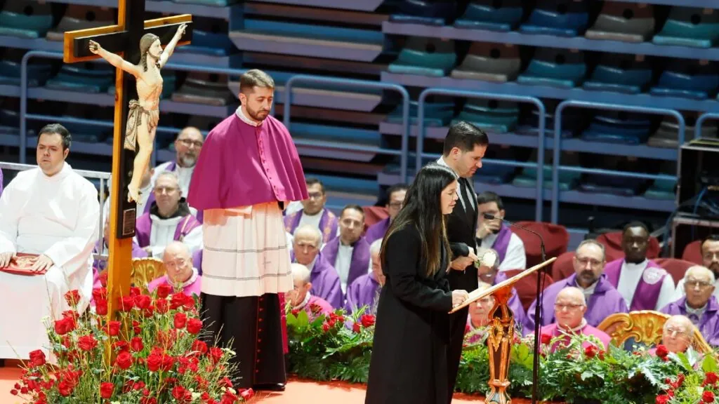 Un momento del funeral que se celebra este jueves en Huelva para acompañar a los familiares de las 45 víctimas mortales del accidente ferroviario de Adamuz, 28 de las cuales eran de municipios de esta provincia | José Manuel Vidal (EFE)