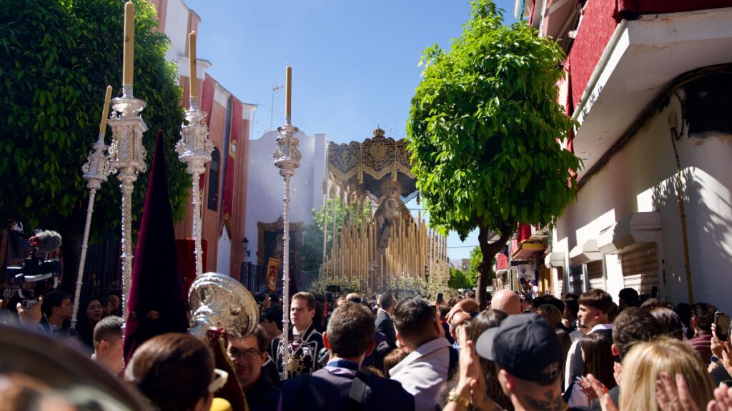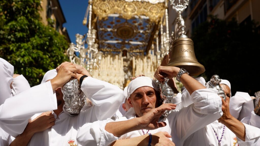 Vista de la procesión de la Virgen del Rocío este Martes Santo en Málaga (Andalucía). | Jorge Zapata / EFE