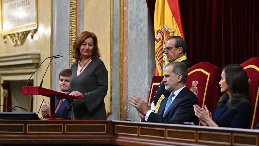 Francina Armengol al terminar su discurso por la longevidad de la Constitución. | Fernando Villar (EFE)