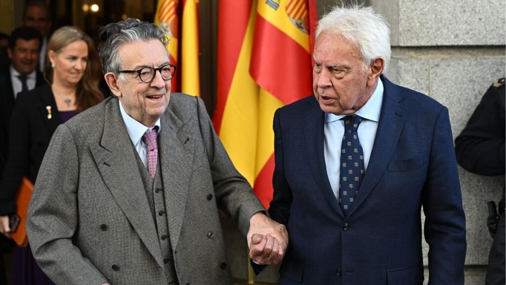 El expresidente del Gobierno Felipe González y el padre de la Constitución Miguel Herrero y Rodríguez de Miñón. | Fernando Villar (EFE)
