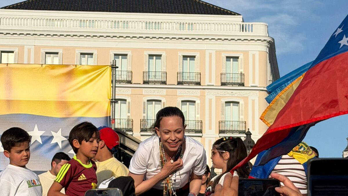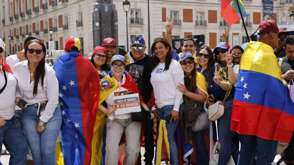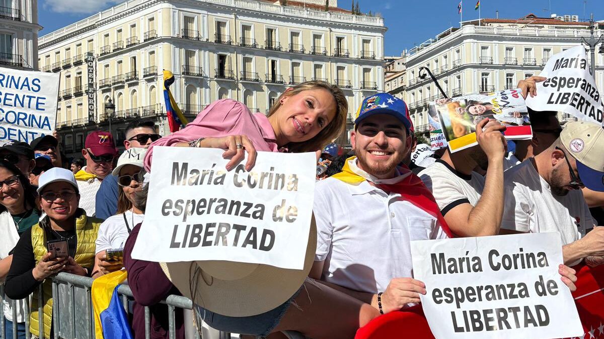 La diáspora venezolana inunda la Puerta del Sol para recibir a María Corina, en imágenes