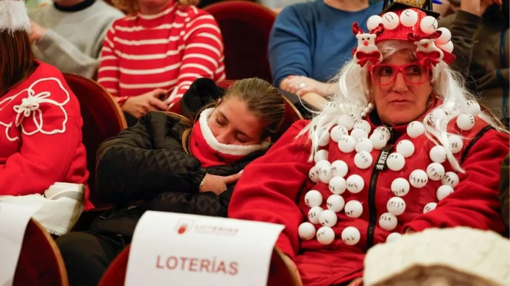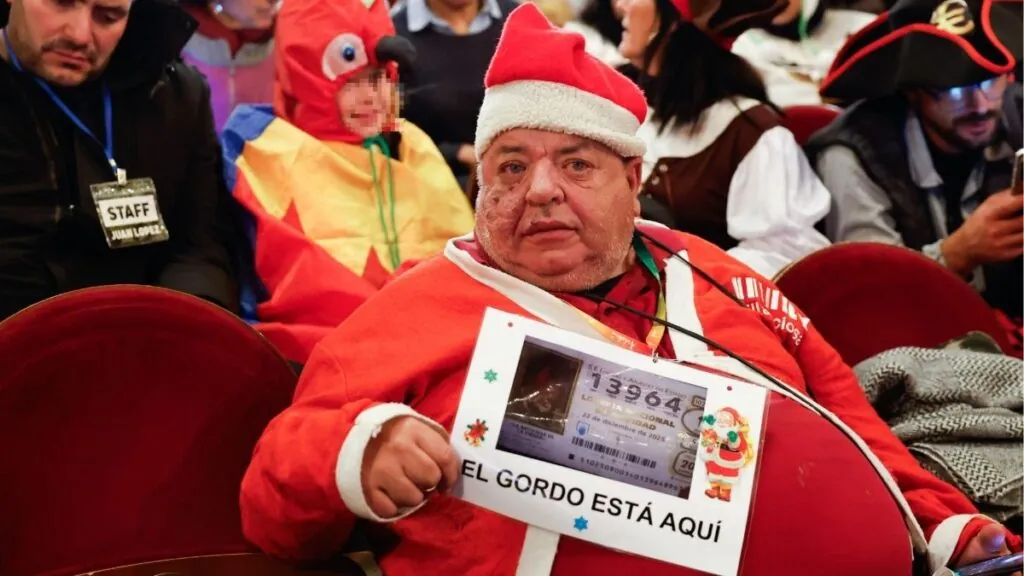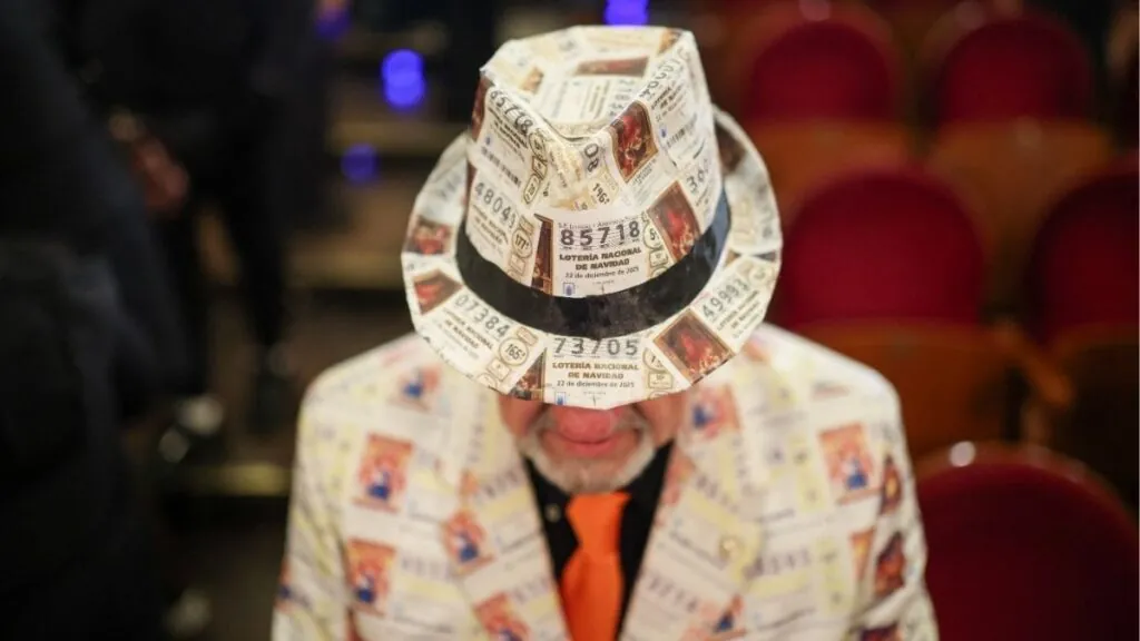 Un asistente del sorteo de Navidad disfrazado. | Foto: Chema Moya (EFE)
