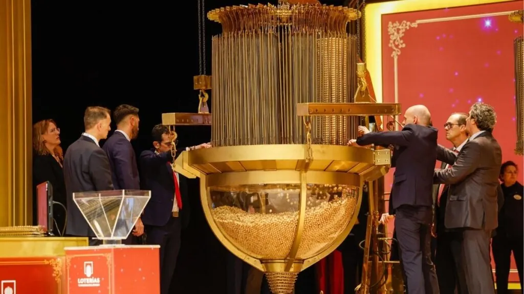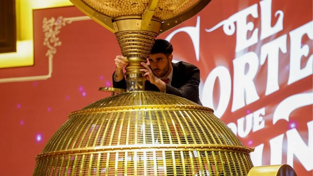 Un trabajador de Loterías y Apuestas del Estado prepara el bombo para el inicio del sorteo. | Foto: Chema Moya (EFE)