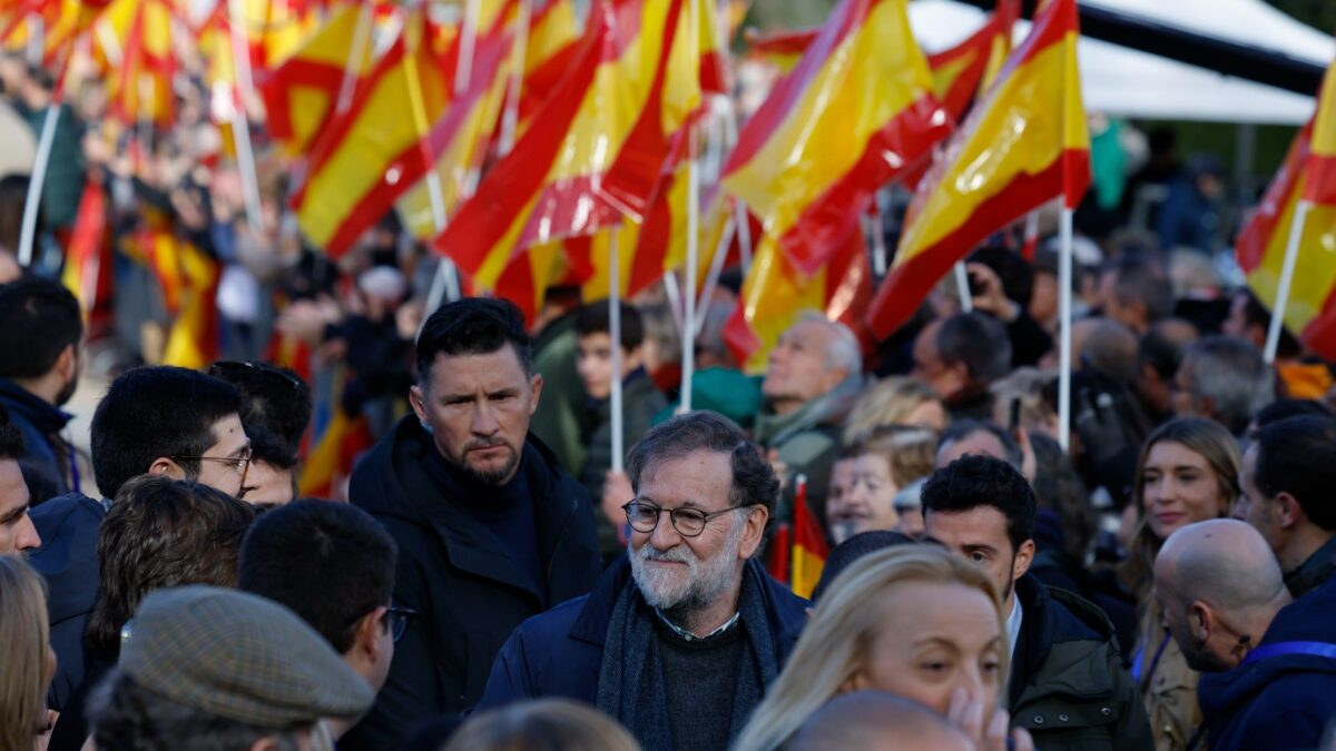 El expresidente Mariano Rajoy participa en la concentración contra el Gobierno de Pedro Sánchez. | Juanjo Martín (EFE)