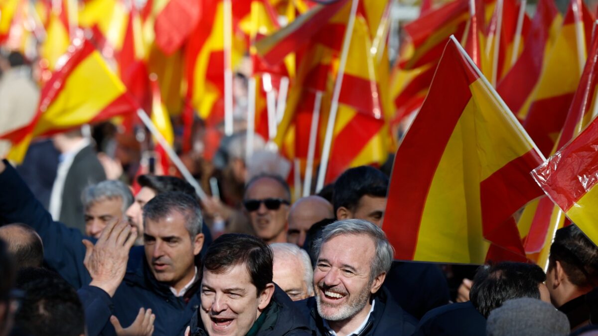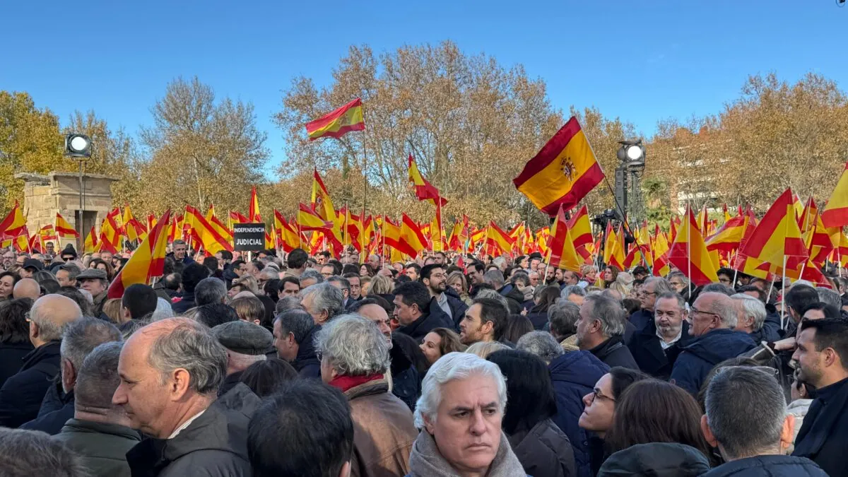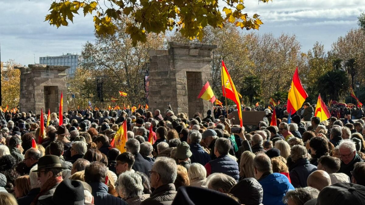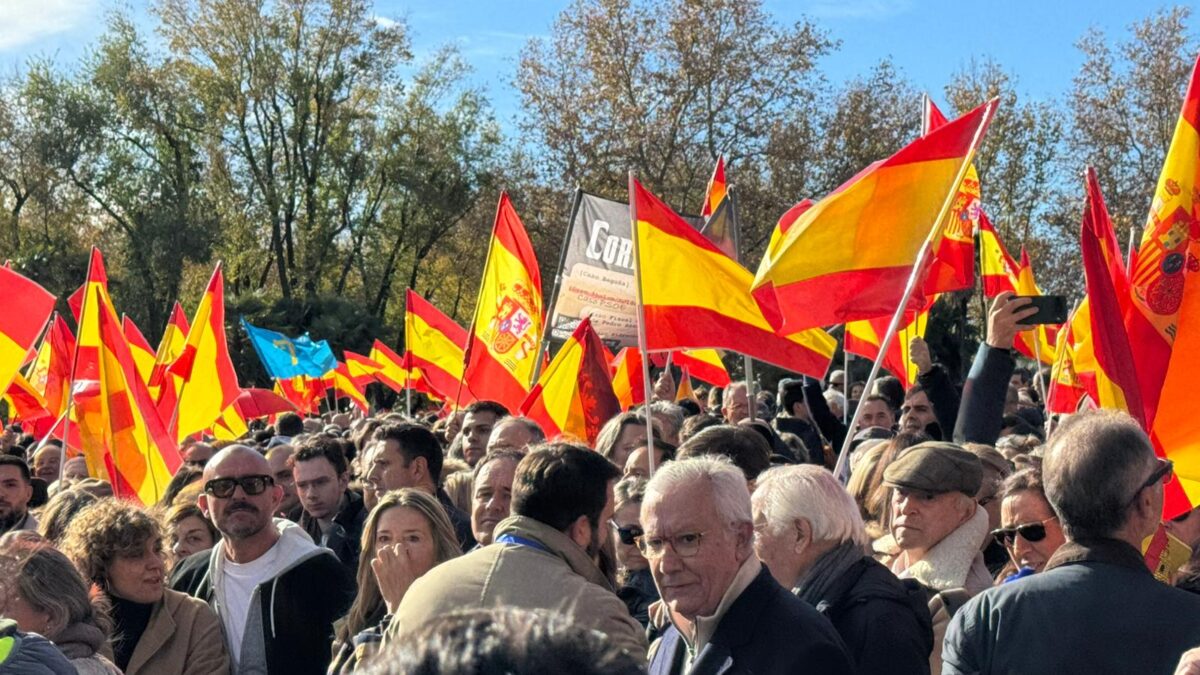 Concentración contra el Gobierno de Pedro Sánchez, por los casos de corrupción que protagonizan José Luis Ábalos, Koldo García y Santos Cerdán. | Juanjo Martín (EFE)