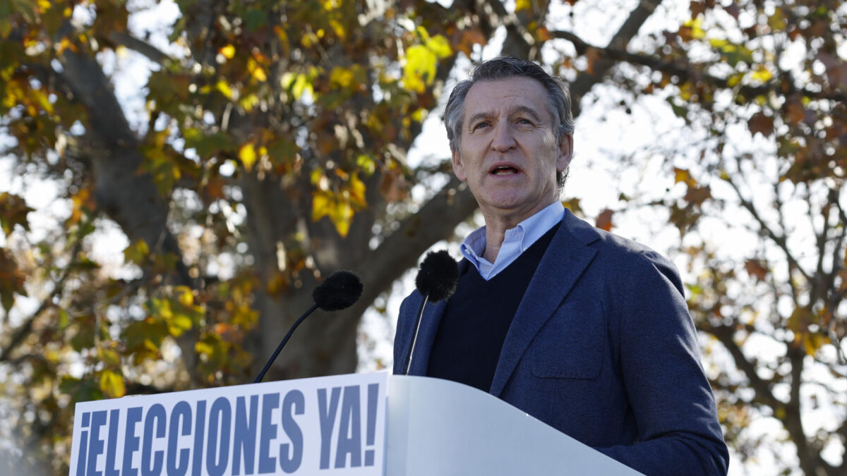 El líder del PP, Alberto Núñez-Feijóo, asiste a la concentración contra el Gobierno de Pedro Sánchez. | Juanjo Martín (EFE)