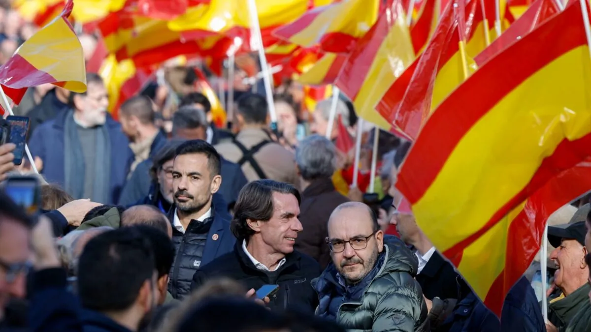 El expresidente José María Aznar participa en la concentración contra el Gobierno de Pedro Sánchez. | Juanjo Martín (EFE)