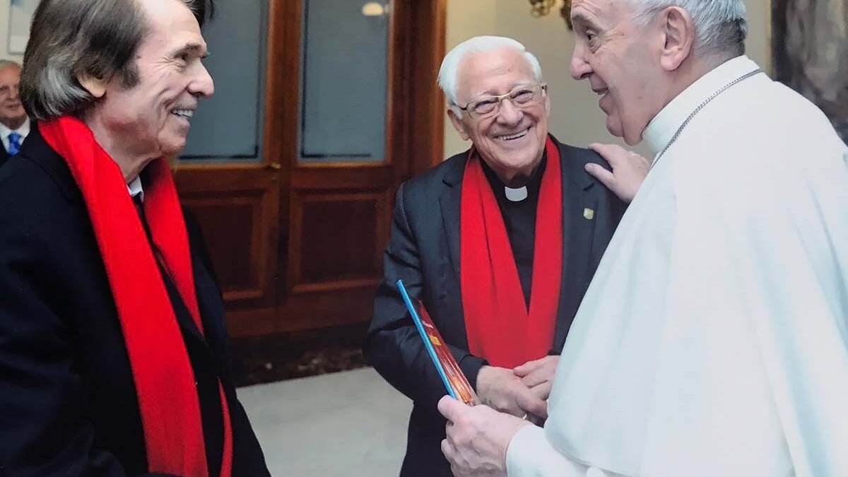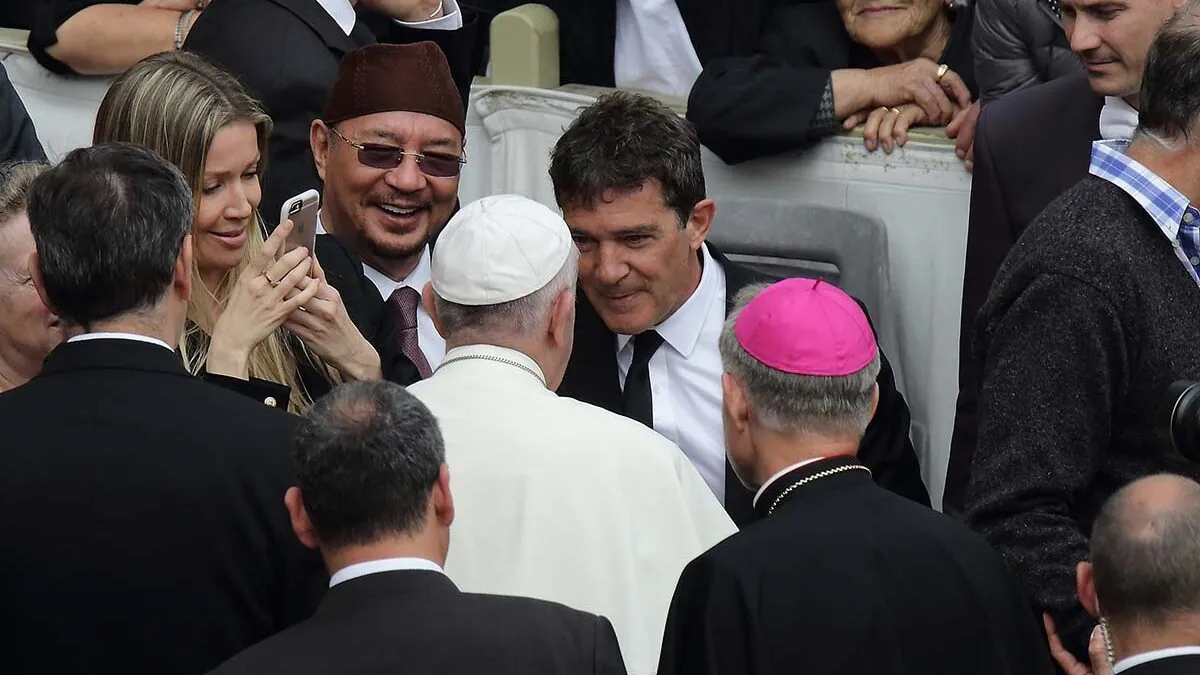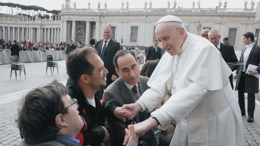 Pablo Pineda y el Langui saludan al Papa en la plaza de San Pedro