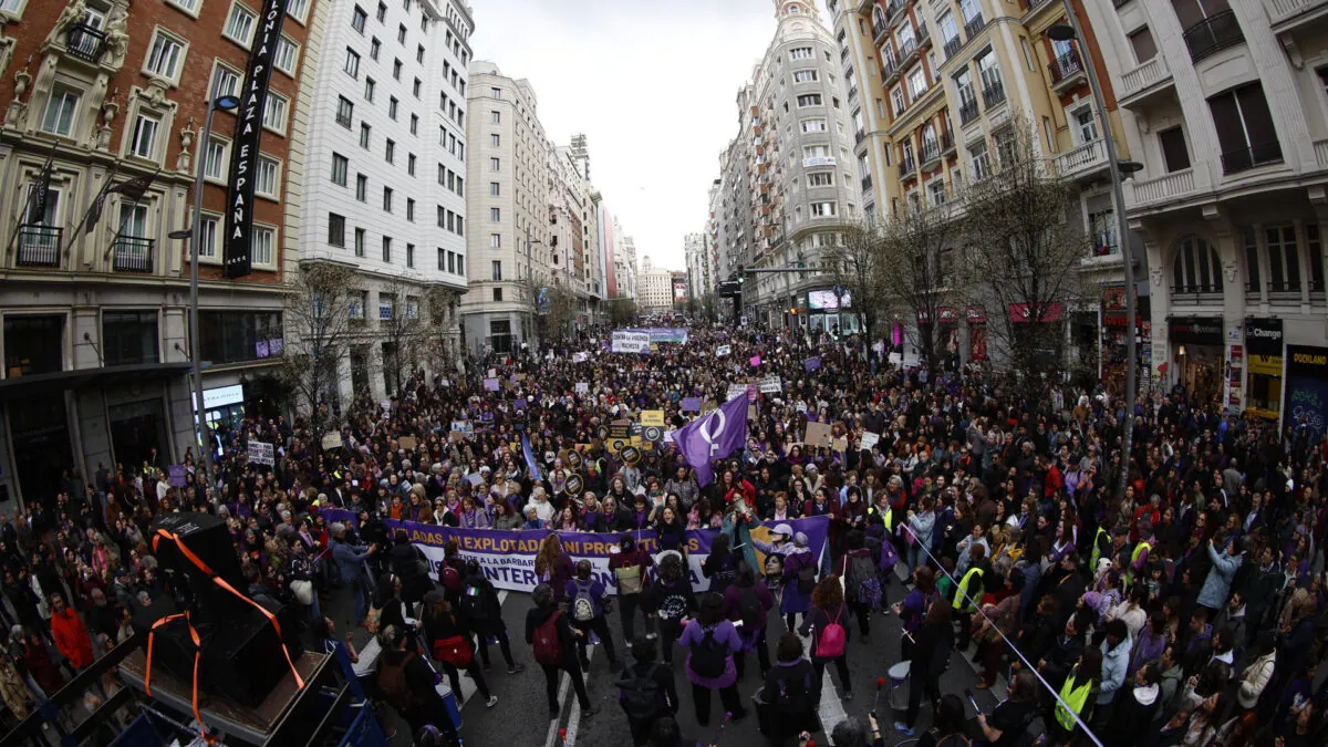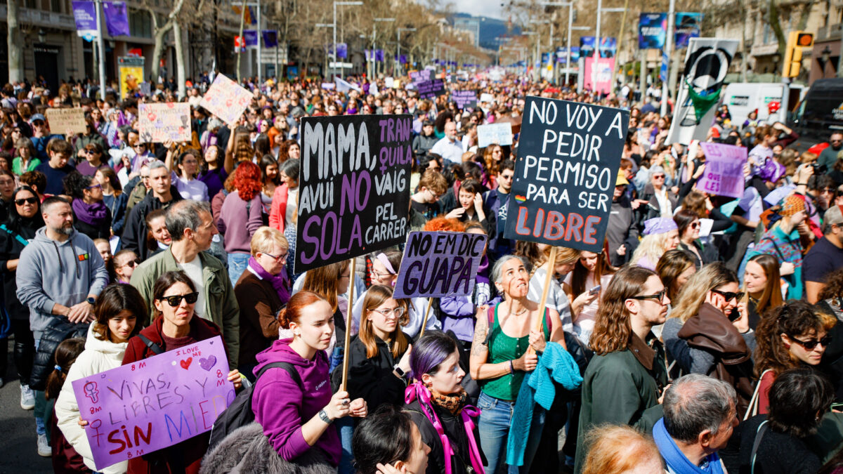 Miles de personas se han manifestado en ciudades y pueblos de España en defensa de los derechos de las mujeres este 8 de marzo. En las principales capitales, las marchas han comenzado a las 12.00 horas, incorporando también el ‘No a la guerra’