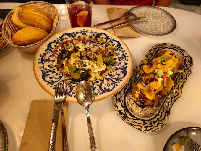 Su propuesta combina clásicos mediterráneos con un toque renovado y fusiones asiáticas, reflejadas en opciones como gyozas, dumplings y diversas salsas orientales. Especializados en piezas de carne a la brasa en su horno de carbón. Ofrecen un menú del día para quienes buscan una opción asequible y rápida, así como un menú de fin de semana.