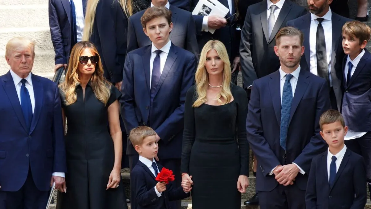 La iglesia de San Vicente Ferrer, ubicada en Lexington Avenue, albergó el último adiós a la multimillonaria modelo y empresaria, al que asistió la familia Trump al completo, incluyendo a Barron (el hijo del expresidente y Melania) y a Tiffany (la hija que tuvo con su segunda mujer), y a nueve de los diez nietos del anterior matrimonio. Donald Jr. acudió con su mujer, Kimberly, aunque también contó con la presencia de su primera esposa, Vanessa, que no quiso faltar a la despedida junto a los cinco hijos que tuvieron en común: Kai Madison, Donald III, Tristan Milos, Spencer Frederick y Chloe Sophia.