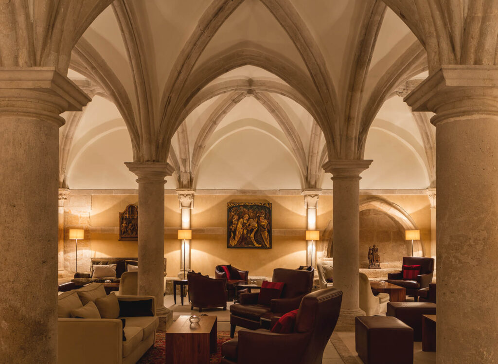 El diseño arquitectónico combina elementos medievales con detalles contemporáneos. Las estancias están decoradas con obras de arte seleccionadas y muebles de diseño, creando un ambiente que respeta la historia del lugar sin renunciar al confort moderno. El hotel cuenta con 30 habitaciones, incluyendo 3 suites, todas ubicadas en la antigua hospedería del monasterio. Estas estancias ofrecen vistas panorámicas a los viñedos que rodean la propiedad, proporcionando un entorno tranquilo y pintoresco. El Santuario Wellness & Spa, situado en el antiguo establo, ofrece una experiencia de relajación única. Los tratamientos combinan productos locales derivados de la viticultura con principios de la medicina tibetana, brindando una fusión de tradición y modernidad.