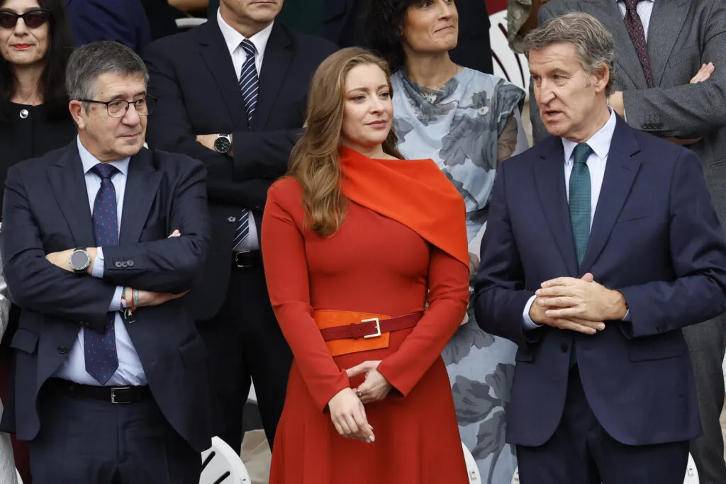 Ester Muñoz escogió un vestido de la firma IQ Collection de Inés Domecq, una firma andaluza muy presente entre las invitadas ese día. El modelo forma parte de la línea Cosmos II, una colaboración entre Inés Domecq y el diseñador Roberto Diz. Se trata de una prenda de largo midi, con falda evasé, manga larga y un cuello evasé llamativo. El vestido combina dos tonos de naranja en su tejido, logrando un efecto visual de alto impacto. Además, el look, ahora, está de rebajas y se puede comprar por unos 340 euros. Como decíamos, Manuela Villena es una de las más elegantes del panorama político. La mujer de Juanma Moreno Bonillo suele resaltar allá donde va por la elección de sus looks, apostando, sobre todo, por la moda andaluza.