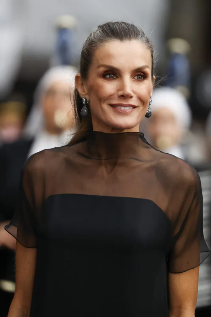 Letizia brilla en su tierra: su vestido de transparencias y coleta en los Princesa de Asturias