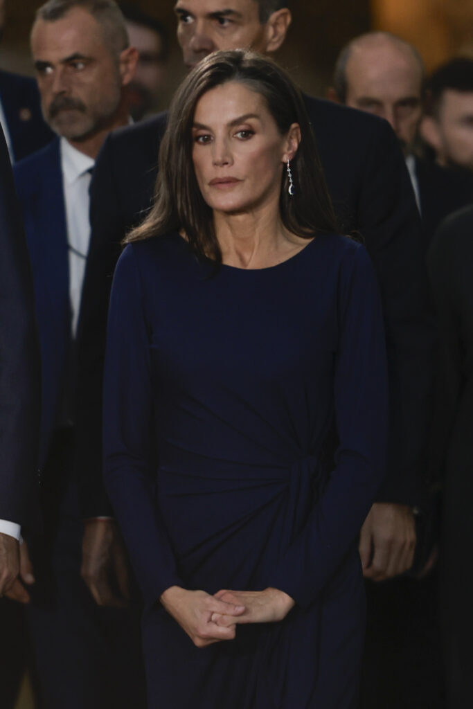 Como decíamos, tanto el rey Felipe como la reina Letizia han llegado puntuales a la cita y se han sentado junto al resto de autoridades. Para este momento, la mujer de Felipe VI ha lucido un bonito vestido, con un fruncido en la zona de la cadera y de corte midi. Además, ha dejado su pelo con unas pequeñas ondas y le ha dado el protagonismo a unos bonitos pendientes. El Rey, como marca el protocolo, también ha vestido de riguroso luto, en un guiño al momento doloroso. Su vuelta a Valencia se produce después de unos meses complicados, en los que ambos monarcas han estado, en varias ocasiones, en el terreno donde se produjo todo; recorriendo los pueblos y los lugares más afectados.