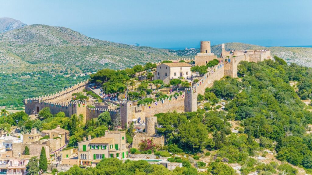 Su símbolo más visible es el castillo medieval que domina el caserío desde una colina, con murallas y torres que ofrecen vistas panorámicas del paisaje y, en días claros, incluso del mar y la isla de Menorca. El casco antiguo conserva ese trazado tradicional con calles estrechas empedradas, casas de piedra y una atmósfera que recuerda a épocas pasadas, lo que le da al pueblo un carácter muy especial. Aunque el núcleo tradicional tiene ese aire histórico, Capdepera forma parte de un entorno que incluye bellísimas zonas de costa y pequeñas localidades costeras, como Cala Ratjada y Cala Mesquida, famosas por sus playas de aguas cristalinas y dunas protegidas. A pocos kilómetros también se encuentran calas más tranquilas y rincones naturales que permiten disfrutar de la naturaleza mediterránea sin aglomeraciones.