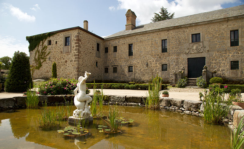 El objetivo era crear un modelo de explotación agrícola, ganadera y de recreo inspirado en las villas renacentistas italianas y flamencas. El corazón de la finca es el palacio, que destaca por el claustro, que es una joya del estilo herreriano, con columnas de orden toscano. Es el espacio que más solemos ver en las series de época, ya que evoca una elegancia sobria y atemporal. Además, está construido principalmente en granito, siguiendo la estética austera típica de la arquitectura de la zona en esa época. Uno de los elementos más impresionantes es su sistema de agua. Felipe II, gran apasionado de la hidráulica, mandó construir cuatro estanques, que servían tanto para el riego como para la cría de peces y para el ocio del Rey —le gustaba navegar en pequeñas barcas—.