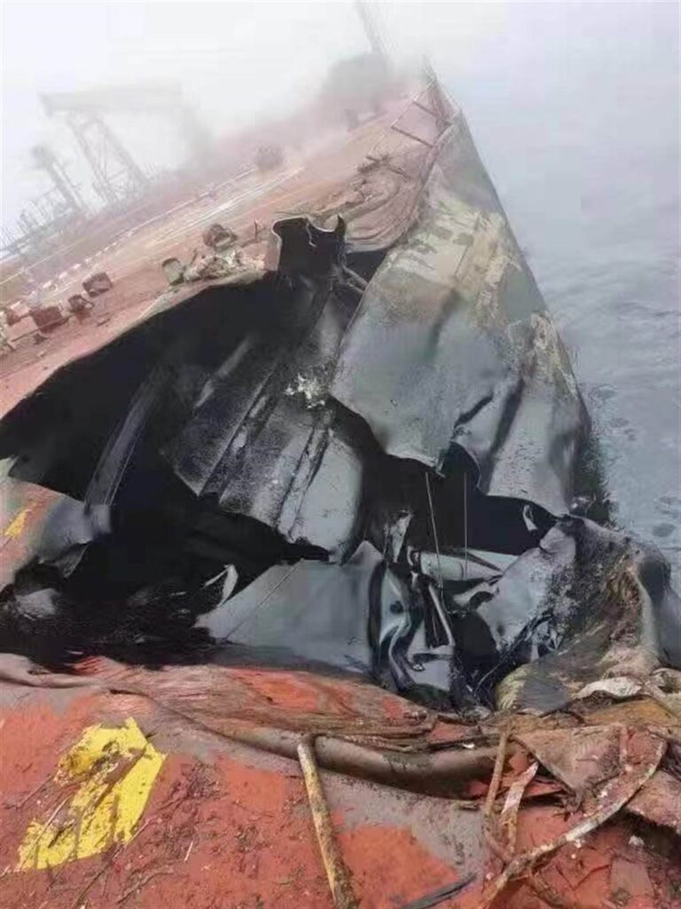 (FOTOS) Un choque entre buques en China provoca que al menos 400 toneladas de petróleo se viertan al mar