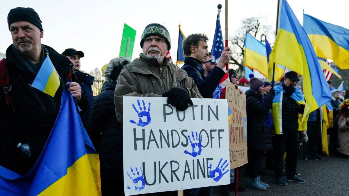 Manifestantes piden dejar en paz a Ucrania. | Sarah Silbiger (Reuters)