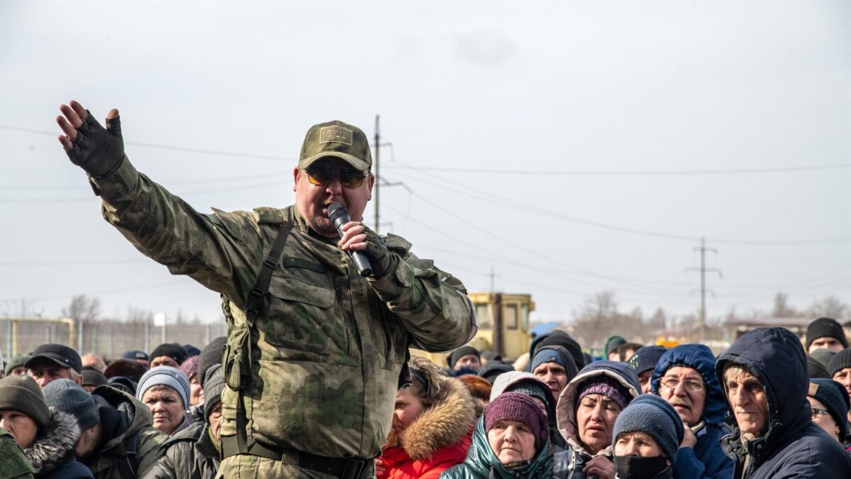 Un militar ruso controla a un grupo de personas que van a ser evacuadas a través de un corredor humanitario en Mariúpol. | EP
