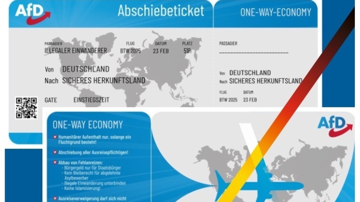 El partido Alternativa para Alemania (AfD) ha comenzado este lunes a repartir unos polémicos panfletos con apariencia de billetes de avión para deportaciones en los buzones de barrios de la ciudad de Karlsruhe con población inmigrante.