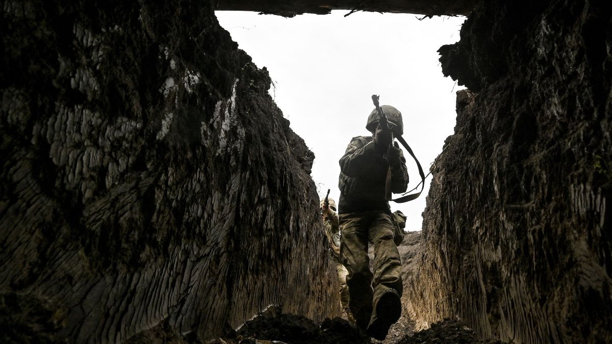 Un soldado ucraniano atraviesa una trinchera en una zona indeterminada de Ucrania. | Dmytro Smolienko (Zuma Press)