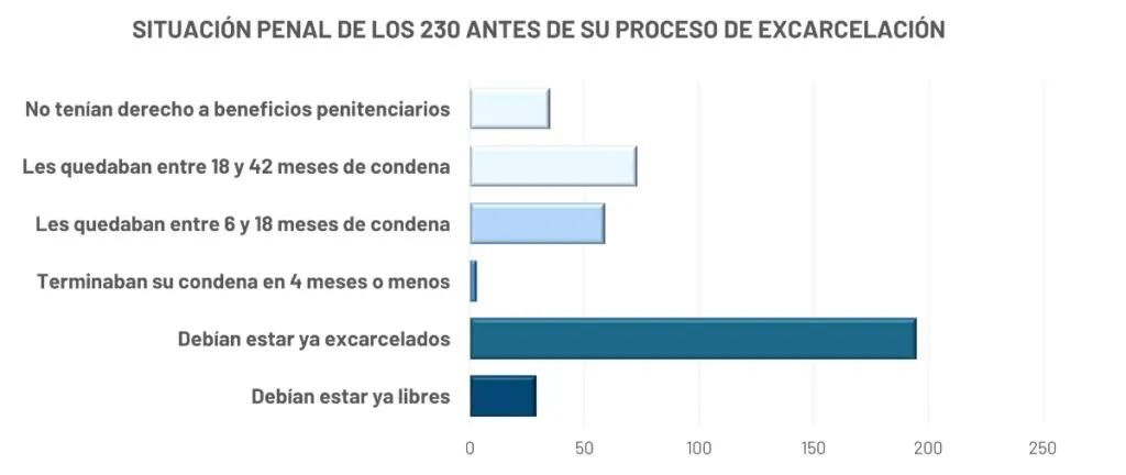 En un estudio realizado en el mes de febrero en el que se actualiza al total de los excarcelados, más del 85% de los presos políticos excarcelados ya tenían derecho al régimen abierto. Según Prisoners Defenders, 195 de los 230 debían haber estado excarcelados antes de este proceso y de ellos incluso 29 debían estar ya libres. «Fueron retenidos en prisión meses o años, en contra de las propias leyes del régimen, con el fin de vender sus liberaciones».