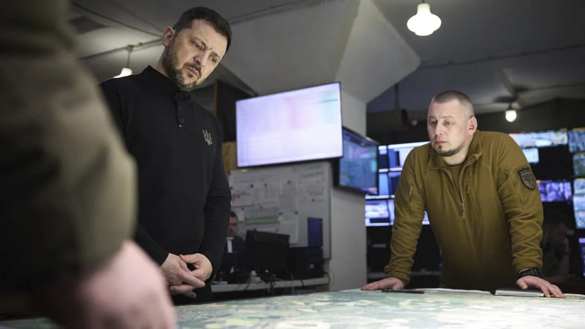 El presidente ucraniano Zelenski, a la izquierda, recibe información sobre la situación de la guerra en el país. | Presidencia de Ucrania